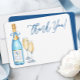 Send heartfelt thanks in style with this elegant bridal shower thank you card. Part of the “Something Blue Before I Do” collection, it features a watercolor blue champagne bottle, bubbling flutes, and a delicate diamond ring accent. Personalize with the bride’s name and event details to coordinate perfectly with your blue-themed celebration or champagne shower.