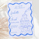 Blue Champagne Tower Wavy Hand Drawn Wedding Invitation