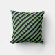 This throw pillow design features stripes colored sky blue, chartreuse, dark slate gray, mint cream, and black.
