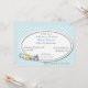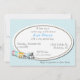 Sweet checkered baby shower invitation. Graphic artwork of a aquamarine and white tiny checkered pattern, as a background, and a white oval text area, in the middle. Cute cartoon train done in pastel colors decorates the the lower left corner. Customize the text to suit your party needs.
