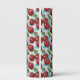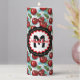 A watercolor ai illustration pattern of retro red cherries, sage green foliage and blue checkered plaid personalized Pillar Candle.