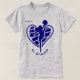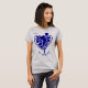 Here's a t-shirt suited for individual members of a cheerleading squad. A blue silhouette cheerleader with pom poms is in front of a matching blue pattern heart. Your custom text is at the bottom, and her name is at the top left. A thoughtful keepsake gift for a special time in their lives! *If you need a different color scheme, message our store and we will try to accommodate!