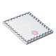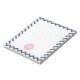 A notepad featuring a blue ikat chevron design. Personalize with your monogram over pink quatrefoil design.