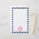 Stationery paper featuring a blue ikat chevron design. Personalize with your monogram over pink quatrefoil design.