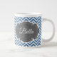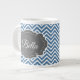 Enjoy your coffee in mass quantities with a Blue Chevron Personalized Jumbo Mug. Mug design features a blue chevron background and an ornate gray tag to personalize with your name and monogram. Additional items available with this design as well. Please contact me directly for assistance with personalization.