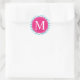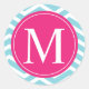 Customise this vibrant blue and white chevron pattern and bright pink monogram design with your initial.