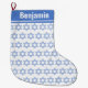 NewParkLane - Elegant Hanukkah / Christmas Stockings, with a pattern of blue chevron Stars of David.Add your own name in the easy to use text template for a personalized design. All text styles and colors can be altered.