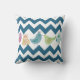 Blue Chevron Stripes Whimsical Cute Birds Owls Throw Pillow