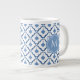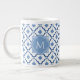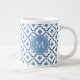 Blue Chinese Ceramic Pattern with Monogram Giant Coffee Mug