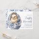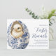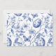 Easter brunch invitation with a blue chinoiserie design featuring an egg and chick on the front and a floral pattern on the back. Edit this template with your event details and RSVP information.