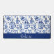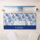 This blue chinoiserie monogram name desk mat features elegant floral vases in classic blue and white with a bold centered name in a trending font. Perfect for home styling, this chinoiserie monogram design adds timeless charm and personalized sophistication.