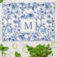 Blue Chinoiserie Toile Pattern Monogram kitchen towel. Customize with your initial.