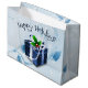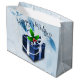 Bag your Christmas gifts with this whimsical and festive Blue Christmas Gift Box Gift Bag. Gift bag design features a vibrant blue Christmas gift adorned with falling snowflakes against an elegant scroll and leaves background. Additional gift and holiday items available with this design as well.