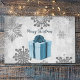 Add an elegant touch to your dining area this holiday season with a Blue Christmas Gift Holiday Laminated Placemat. Placemat design features a vibrant wrapped Christmas gift adorned with gray and white snowflakes against a gray grunge background. Additional gift and holiday items available with this design as well.