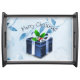 Serve meals or beverages to family or guests this holiday season with this Blue Christmas Gift Serving Tray. Tray design features a vibrant blue Christmas gift adorned with holly berries and falling snowflakes against an elegant scroll and leaves background. Additional gift and holiday items available with this design as well.