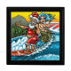 Blue Christmas Hawaiian Surfing Santa Illustration Keepsake Box