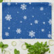 This festive kitchen towel features a cute Christmas pattern with white stars and snowflakes on a customizable blue background. Click Edit design to change the background color.