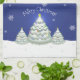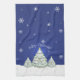 Add a holiday touch to your kitchen with this Blue Christmas Tree Kitchen Towel. Towel design features a trio of snow covered decorated Christmas Trees against a blue background and snowflakes. Additional gift and holiday items available with this design as well.