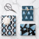 Blue Christmas Tree On Black And Blue Wrapping Paper Sheets