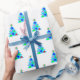 Blue Christmas Tree Pattern Customizable Wrapping Paper