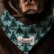 Get your dog ready for the holidays with this vibrant Christmas tree pattern bandana. Featuring a festive array of green Christmas trees on a blue background, this bandana brings holiday cheer to your pet's wardrobe. Pet name is elegantly displayed on a bone-shaped accent, making it a perfect personalized accessory for your furry friend. Ideal for holiday parties, family gatherings, and festive photoshoots, this bandana combines style and comfort to ensure your dog looks his best during the holiday season.