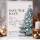 Blue Christmas Tree Silver Baubles Save The Date Invitation