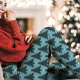 Blue Christmas Tree Star Pattern Holiday Leggings