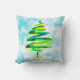 Blue Christmas Tree watercolor Throw Pillow