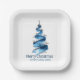 Blue Christmas Tree Watercolour Paper Plates