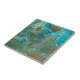 Ceramic tile that features a photo image of the beautiful, turquoise blue colors of Chrysocolla mineral stone. Select your size tile. Makes a great trivet for the kitchen. Please not that there is no real stone in this product.