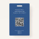 A Minimalist employee badge on a blue background with a circle photo frame for company, small business, festival, press staff, etc. It comes with company name, employee's name, job or service on the front. On the back, you have a QR Code, 2 customizable text zones.