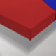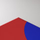 This bold geometric pattern features a blue circle in the center and two blue half circles on the edges of a red background.