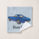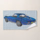 Blue Classic Corvette Design Bath Towel Set with customizable background color to match your bathroom decor.
