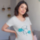 Boho and dreamy baby shower t-shirt design featuring watercolor illustration of turquoise blue clouds. The text says "we are on cloud nine."