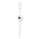 I only have one complaint. I ordered the watch with clear case and strap, and what was sent was white case and strap. I'm going to keep it because 1) it looks very nice in white, and 2) it would take too long to get a replacement made and sent in time for my occasion. Aside from the mix up with the color, the watch does look very good in white. The purple dial is actually sparkly which did not show in the online images. That was a nice surprise. If you like Swatch watches this is very similar to those. It's 33.6mm in diameter, 10.5mm thick, and 40.6mm lug to lug. Stainless steel case back says 3ATM/30m WR, so no swimming or showering or submerging this one. If you like Woodstock, this is a great choice.