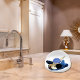 Personalized dome glass paperweight desk ornament featuring a blue coastal floral bouquet. Coastal bouquet first published in the visual poem called "The Geode" from Volume IV of the Diamond Dust Poems From the Black Sea photo book series.