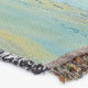 A quality printed throw has its advantages. This is a much finer weave throw than its loopier cousins, and though lighter, it is worth the investment for custom room accessorizing. The back is much prettier than the typical brown, and the fringe on the long sides very vivid, the selvage nicely done. Before photographing, I washed the throw in cold water, delicate, with a thicker woven throw the same size. On tumble dry low, this throw was dry in half the time as the other. This is a very practical quality if you use throws for furniture covers or to wrap up in frequently. The sleekness of the fabric makes it a great layer for accenting or protecting without the feeling of sitting on too much stuff. Perfect for napping or when you feel a light chill coming on. The color printing is beautiful and on this fabric, matched the design and color of my Photoshop image. This is an advantage for blending room fabrics and colors. The fringe on the short sides prints the colors from the design image and therefore varies from the side fringe. I streaked a white fractal line through the plaid pattern to give the illusion of weaving. This printed as crisp as an illusory thread, and put some white in the short side fringe, showing another advantage of print vs loomed- for artistic purposes, line lines, detail, and color integrity can be planned and preserved. My loomed throws have color limitations and more of a needlepoint texture. Print throws reproduce an exact image. The throw felt a little stiff straight out of the package, but this went away in the first delicate wash. Of course I searched the wash water for ink or bleeding and there was none.