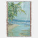 "Blue Coastal Lagoon" by Suzanne Wilkins. Features a serene beach with tropical trees.