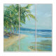 "Blue Coastal Lagoon" by Suzanne Wilkins. Features a serene beach with tropical trees.
