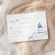 This elegant New England coastal wedding RSVP card features a hand drawn toile-style lighthouse and delicate calligraphy script.