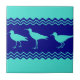 Blue Coastal Sandpiper Bird Stripes Ceramic Tile