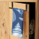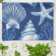 Kitchen Towel - Elegant blue and white coastal toile pattern with detailed coral, seashells, and starfish illustrations. Ideal for beach lovers, coastal decor fans, and those who enjoy classic ocean-inspired designs.