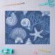 Tissue Paper - Elegant blue and white coastal toile pattern with detailed coral, seashells, and starfish illustrations. Ideal for beach lovers, coastal decor fans, and those who enjoy classic ocean-inspired designs.