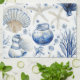 Kitchen Towel - Elegant blue and white coastal toile pattern with detailed coral, seashells, and starfish illustrations. Ideal for beach lovers, coastal decor fans, and those who enjoy classic ocean-inspired designs.