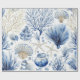 Wrapping Paper - Elegant blue and white coastal toile pattern with detailed coral, seashells, and starfish illustrations. Ideal for beach lovers, coastal decor fans, and those who enjoy classic ocean-inspired designs.