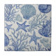 Ceramic Tile - Elegant blue and white coastal toile pattern with detailed coral, seashells, and starfish illustrations. Ideal for beach lovers, coastal decor fans, and those who enjoy classic ocean-inspired designs.