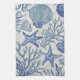 Kitchen Towel - Elegant blue and white coastal toile pattern with detailed coral, seashells, and starfish illustrations. Ideal for beach lovers, coastal decor fans, and those who enjoy classic ocean-inspired designs.