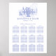 This elegant wedding seating chart features a white background with an illustration of a colonial revival style/plantation house/manor/mansion with a fountain and trees in blue. Personalize it for your needs. You can find matching products at my store.