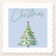 Merry Christmas Coaster– Blue Background, Snowflakes & Festive Tree