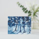 Blue colored watercolor landscape, abstract tree holiday postcard